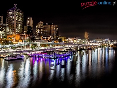 Domy, Miasto nocą, Australia, Rzeka Brisbane, Most