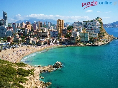 Miasto, Morze, Benidorm, Hiszpania, Plaża