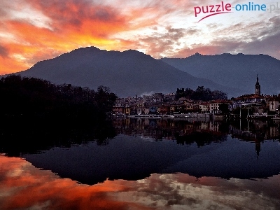 Miasto, Lustrzane, Góry, Jezioro, Odbicie