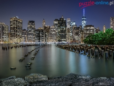 Dolny, Miasto nocą, Stany Zjednoczone, Nowy Jork, Manhattan
