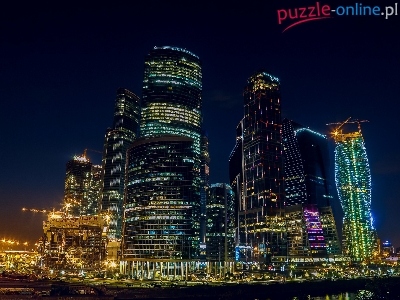 Miasto, Drapacze Chmur, Rosja, Moskwa, Noc