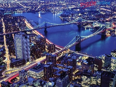 Miasto, USA, Rzeka, Mosty, Noc