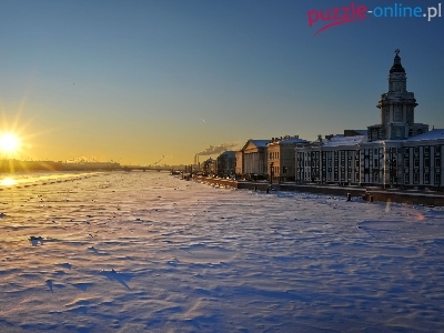 Puzzle Miasto, Zima, Śnieg, Słoneczko