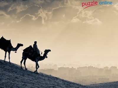 Miasto, Pustynia, Wielbłądy, Piasek, Człowiek