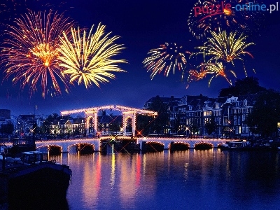 Fajerwerki, Noc, Miasto, Rzeka, Amsterdam