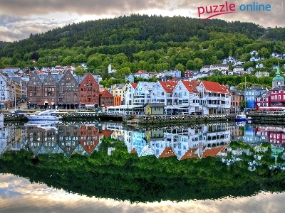 Puzzle Miasto, Góry, Rzeka, Odbicie