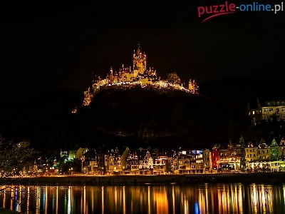 Puzzle Niemcy, Zamek Reichsburg, Miasto Cochem, Rzeka Mozela