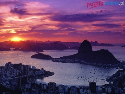 Miasto, Góry, Zachód, Słońca, Morze
