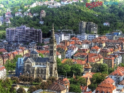 Miasto, Domy, Niemcy, Stuttgart, Kościół