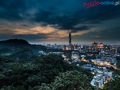 Miasto, Tajwan, Panorama, Chiny, Tajpej, Noc
