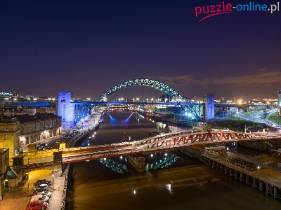 Tyne, Miasto nocą, Mosty, Rzeka, Wielka Brytania