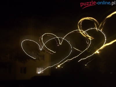 Puzzle Miasto, Serca, Światło, Noc