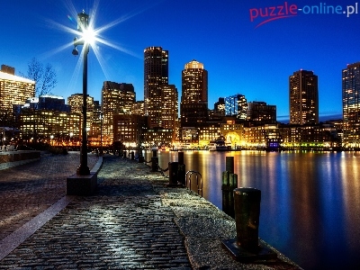 Miasto, Stany Zjednoczone, Oświetlone, Wieżowce, Boston
