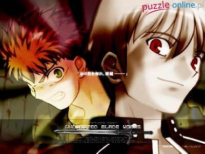 napisy, miecz, mężczyźni, Fate Stay Night, twarze, oczy