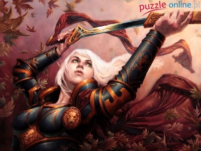 Puzzle Miecz, Dziewczyna, Zbroja, Liście