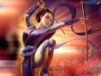 Puzzle Łąka, Dziewczyna, Miecze, Kwiatów