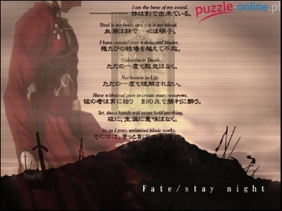 postać, miecze, wzgórze, Fate Stay Night, napisy