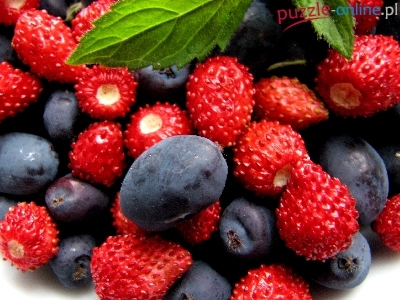 Puzzle Mięta, Owoce, Poziomki, Jagody