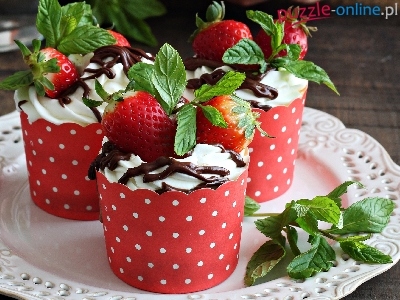 Puzzle Mięta, Babeczki, Truskawki, Talerzyk