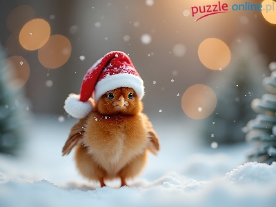 Kurczak, Mikołaj, Czapka, Grafika, Śnieg