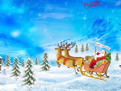 Puzzle Sanie, Mikołaj, Renifery