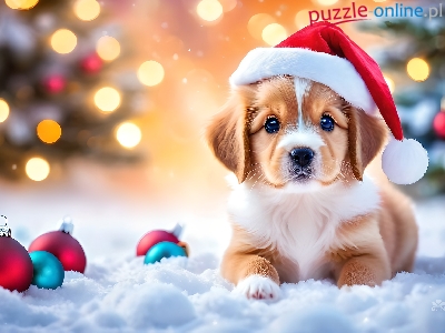 Śnieg, Czapka, Szczeniak, Mikołaja, Grafika, Bombki