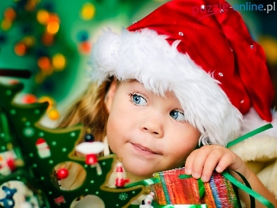 Narodzenie, Mikołaja, Prezent, Czapka, Boże, Dziecko, Choinka