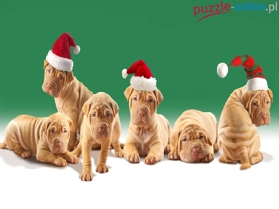 Puzzle Mikołaja, Psy, Czapki, Shar Pei