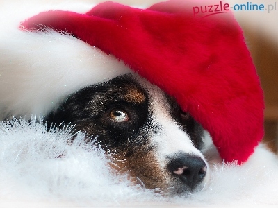 Puzzle Mikołajek, Pies, Owczarek australijski, Czapka