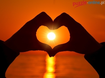 Puzzle Miłość, Dłonie, Serce, Zachód słońca