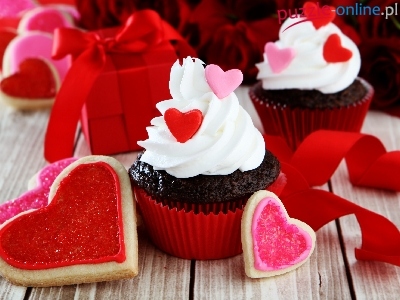Krem, Miłosne, Wstążki, Ciastka, Prezent, Babeczki, Serca, Walentynki