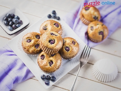Miseczka, Widelec, Babeczki, Jagody, Talerz