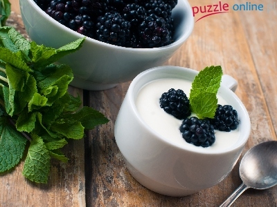 Jeżyny, Miseczka, Łyżeczka, Deser, Mięta, Owoce, Filiżanka