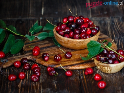 Puzzle Miseczki, Owoce, Liście, Kompozycja
