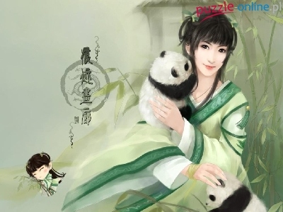 Puzzle Misie, Chińska, Dziewczyna, Panda