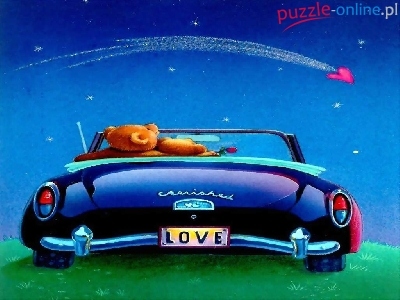 Puzzle Misie, Para, Zakochanych, Samochód