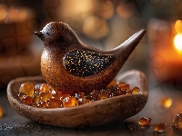 Dekoracja, Ptak, Drewniany, Miska, Grafika AI, Kamienie