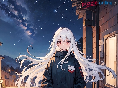 Noc, Dziewczyna, Sklep, Anime, Domy, Kurtka, Droga mleczna