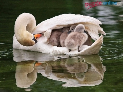 Puzzle Łabędzie, Młode, Woda