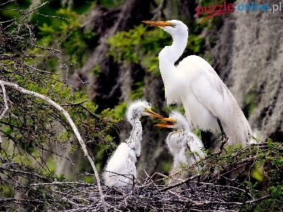 Puzzle Młode, Czapla, Biała, Gniazdo