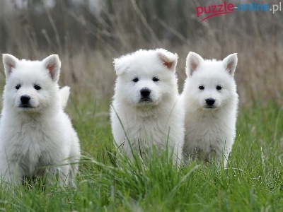 Puzzle Młode, Trzy, Białe Owczarki Szwajcarskie