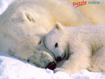 Puzzle Młody, Biała, Niedźwiedzica, Niedźwiadek