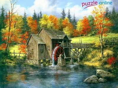Puzzle Las, Młyn, Rzeka
