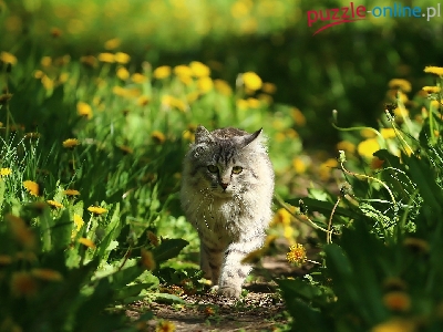 Mniszek lekarski, Ścieżka, Kot, Łąka, Zieleń