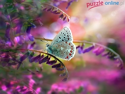 Puzzle Modraszek ikar, Motyl, Kwiaty
