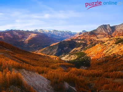 Puzzle Żółte, Jesień, Góry, Modrzewie