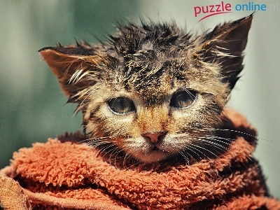 Puzzle Kotek, Mokry, Ręcznik