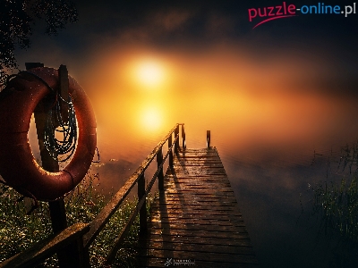 Molo, Jezioro, Ratunkowe, Mgła, Pomost, Koło