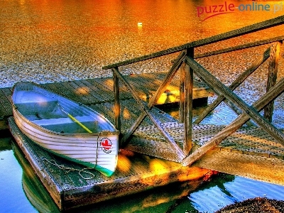 Molo, Zachód, Łódka, Jezioro, Słońca, Schody