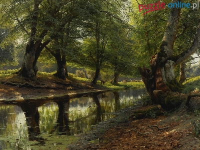 Peder Monsted, Rzeka, Sarny, Koryto, Malarstwo, Drzewa, Jelenie